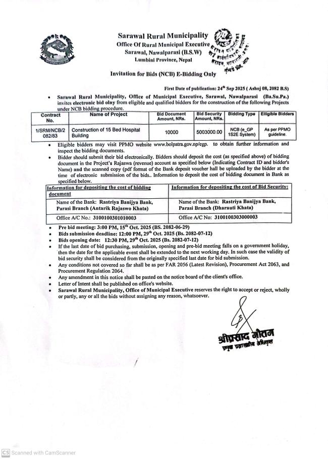 सार्वजनिक खरिद/बोलपत्र सूचना