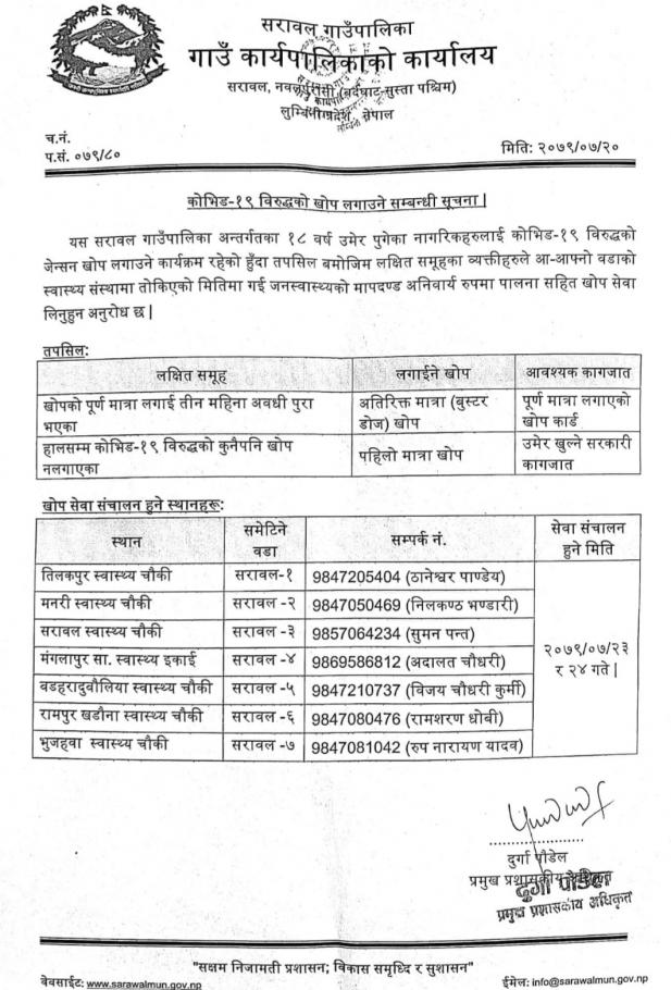 » कोभिड १९ विरुद्धको खोप लगाउने सम्बन्धी सूचना ।।