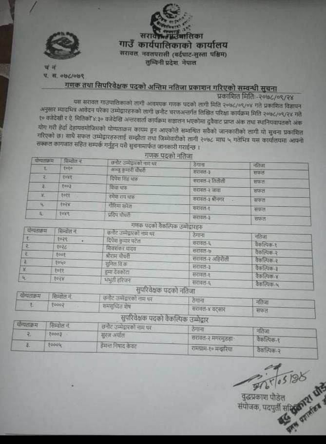 गणक तथा सुपरिवेक्षक पदको अन्तिम नतिजा प्रकाशन सम्वन्धमा!!