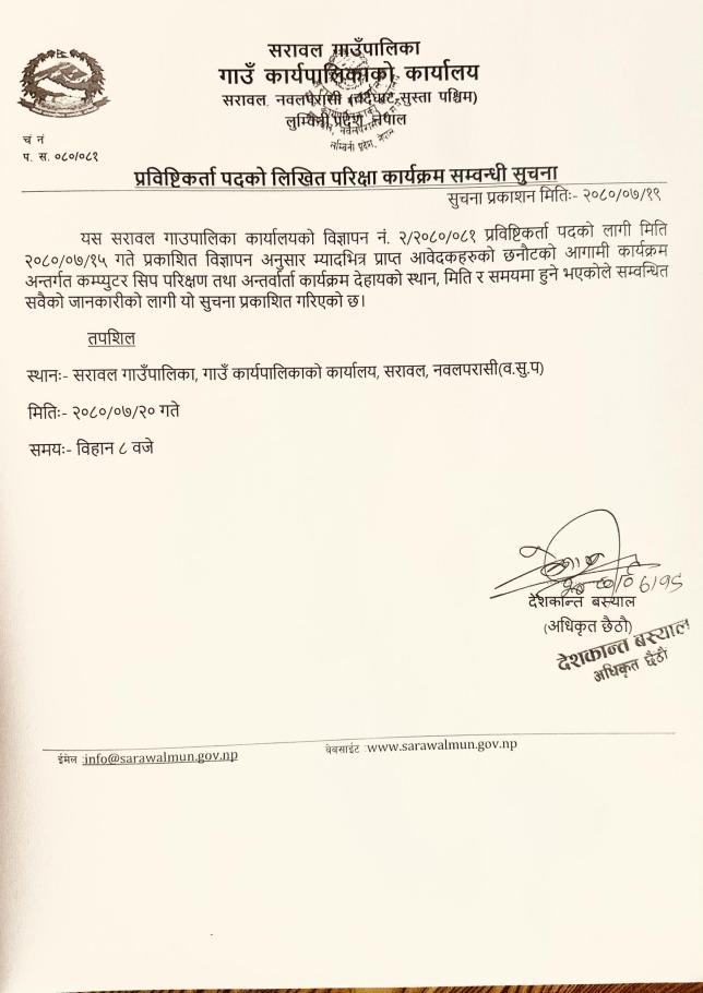 लिखित परिक्षा कार्यक्रम सम्बन्धी सूचना