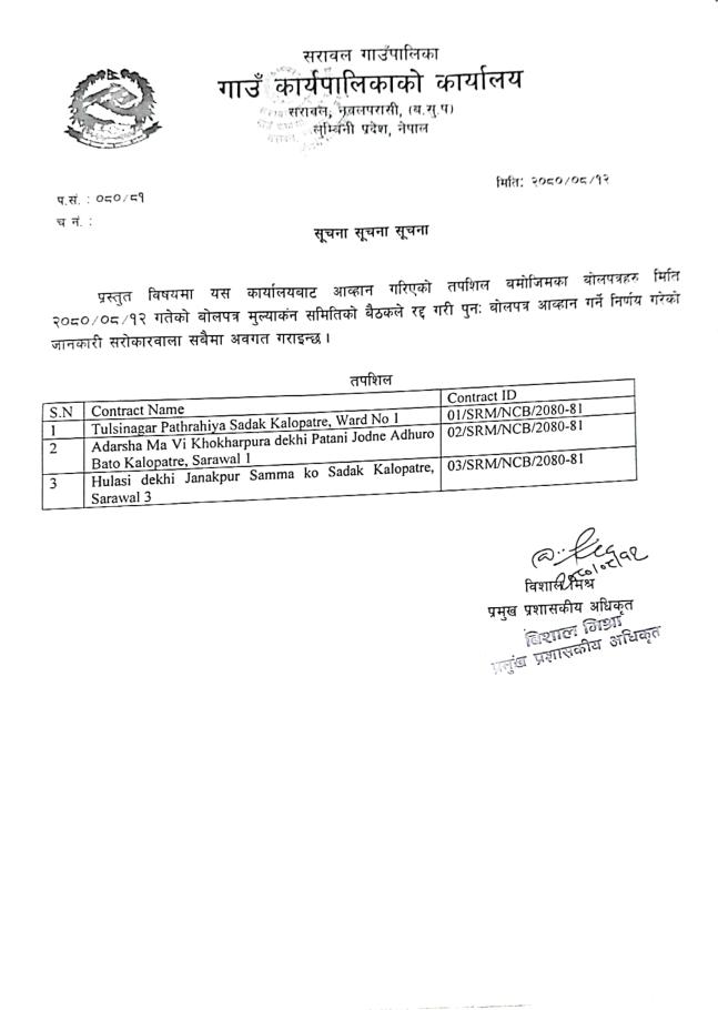 सार्वजनिक खरिद/बोलपत्र सूचना