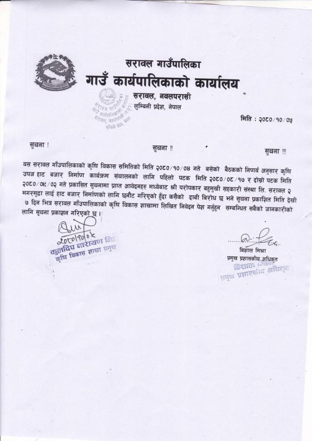 हाट बजार निर्माणको लाभग्राही छनौट गरिएको सूचना !!