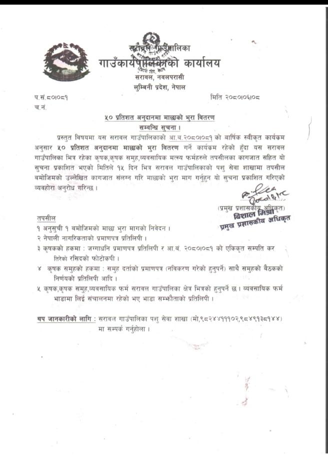 ५० प्रतिशत अनुदानमा माछाको भुरा वितरण सम्बन्धी सूचना !!