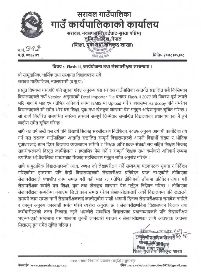 Flash-II 2077 अद्यावधिक, सिकाई सहजिकरण कार्ययोजना र लेखापरीक्षण सम्बन्धमा अत्यन्तै जरूरी सूचना !!
