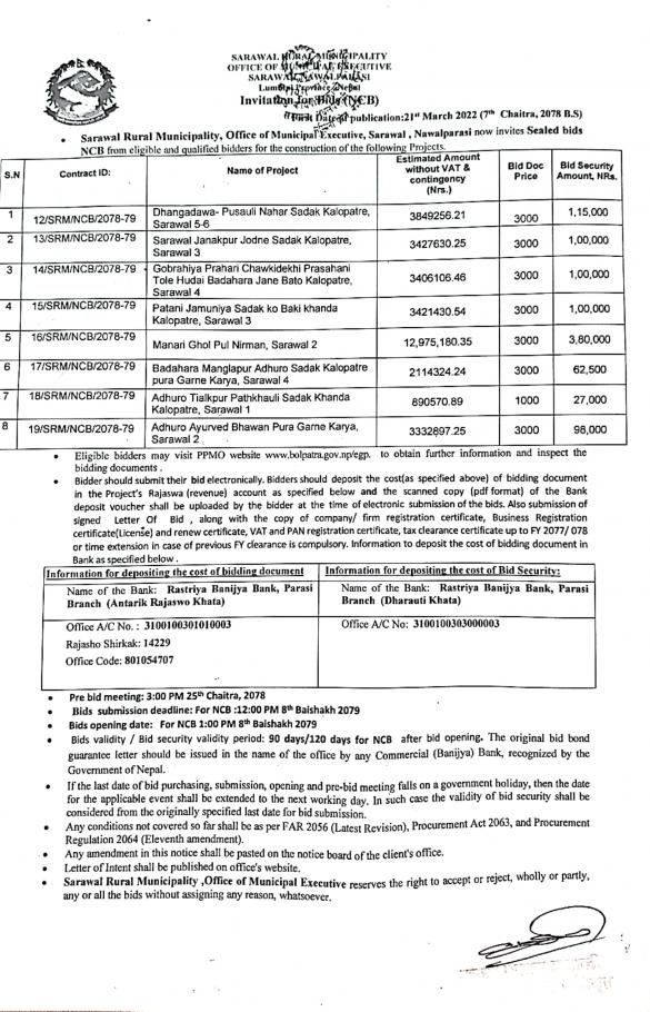सार्वजनिक खरिद/बोलपत्र सूचना